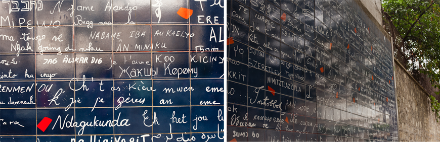 Le mur des je t'aime est un monument dédié à l'amour érigé dans le jardin romantique du square Jehan Rictus, place des Abbesses à Paris Montmartre
